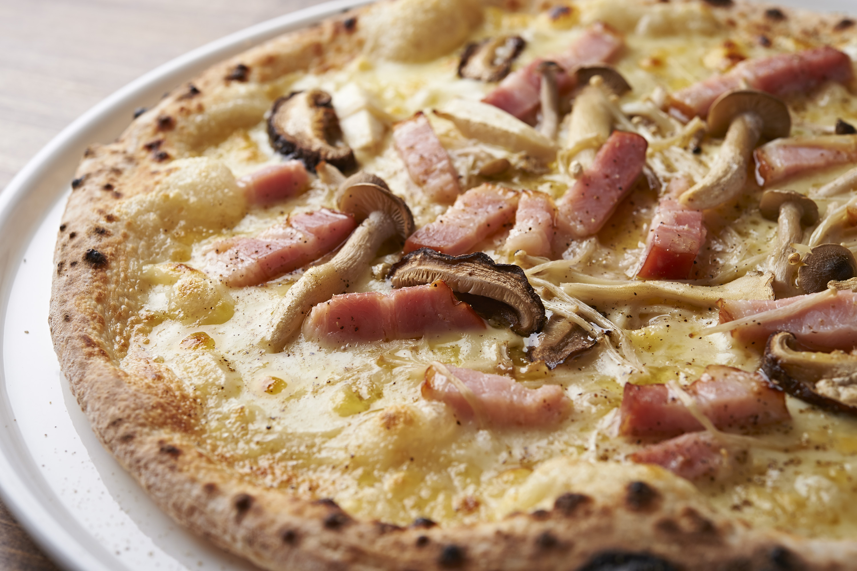 素材の味を楽しむならピッツァ「フンギ」がオススメ☆イタリア語でキノコを意味するフンギ!その名の通り数種のキノコを使ったピッツァです☆トマトやクリームなどのソースは使用せずにキノコとベーコンとモッツァレラの具材のみをトッピング!黒コショウと焦...
